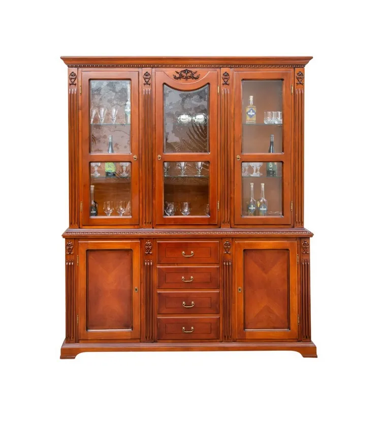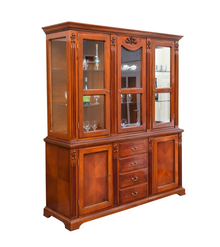 Viktória termékcsaládunk 3 ajtós tálalója, üvegezett felületeivel látni engedi a benne tárolt, porcelánokat, dísztárgyakat.